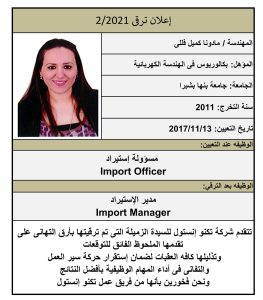 تهنئة بترقية السادة الزملاء المتميزين Feb 16, 2023 admin No Comment 51 Views تهنئ شركة تكنو إنستول السادة الزملاء المتميزين الذين تم ترقيتهم ونتمنى من جميع فريق العمل كل التوفيق والنجاح والعمل جاهدين للترقى والسمو لأعلى درجات التميز والخبرة